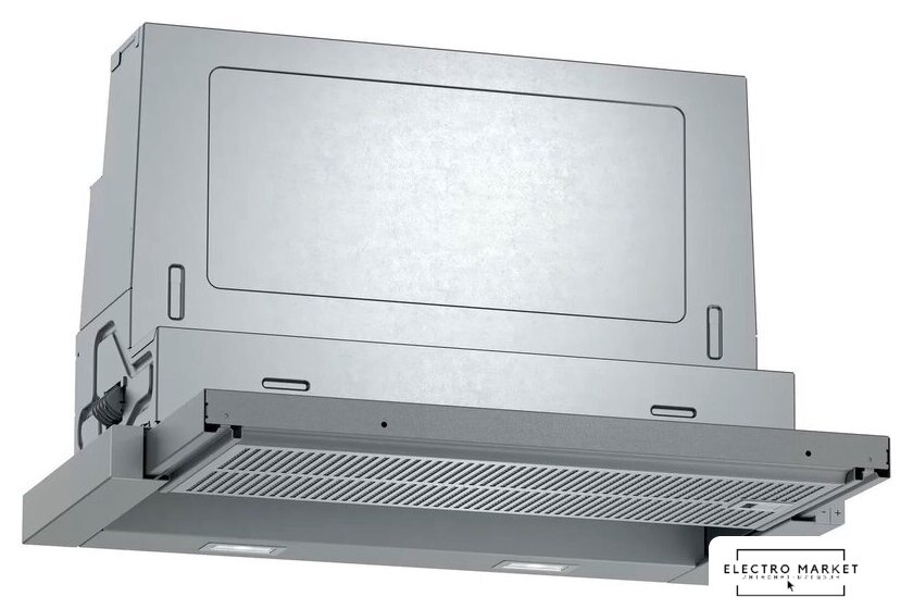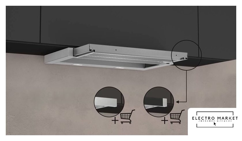 конструкция скрытая, монтаж для встраивания, ширина 52.3 см, управление электронное/кнопочное, производительность вытяжки 600 м³/ч, производительность мотора 1300 м³/ч, цвет белый/нержавеющая сталь