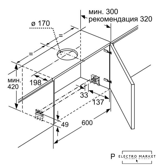 | Минимальная производительность отвода | 220 куб. м/ч |
