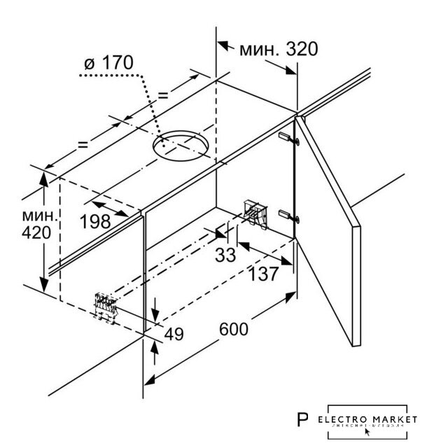 | Минимальная производительность отвода | 198 куб. м/ч |
