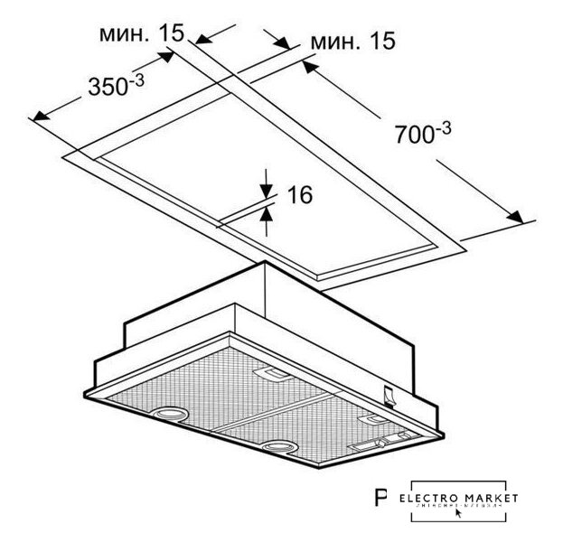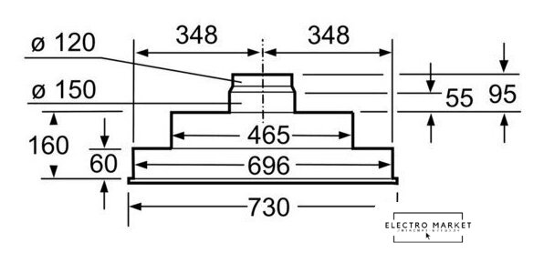 монтаж настенный, ширина 60 см, управление электронное, производительность мотора 550 м³/ч