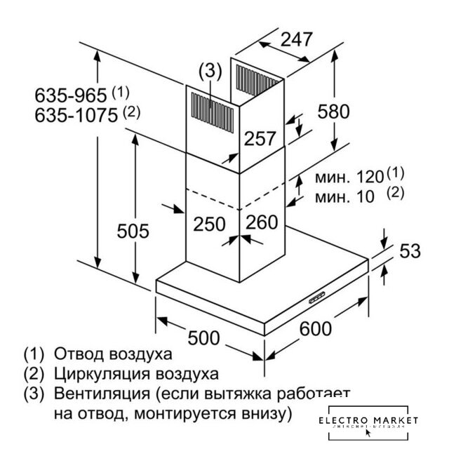 конструкция Т-образная, монтаж настенный, ширина 60 см, управление электронное, производительность мотора 650 м³/ч, цвет нержавеющая сталь