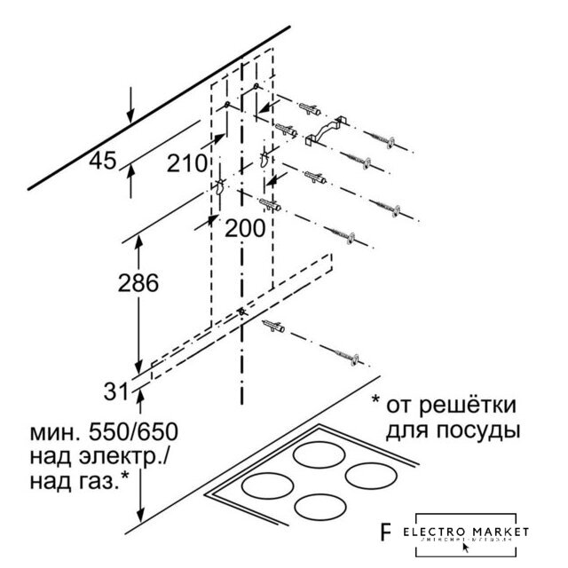 конструкция Т-образная, монтаж настенный, ширина 60 см, управление кнопочное, производительность мотора 430 м³/ч, цвет нержавеющая сталь