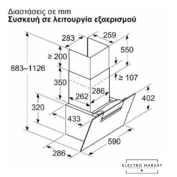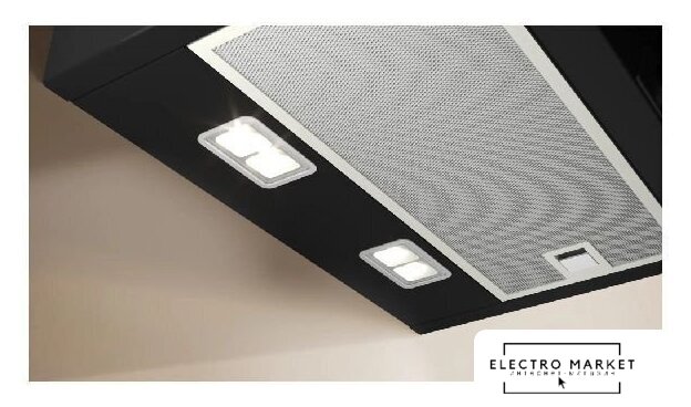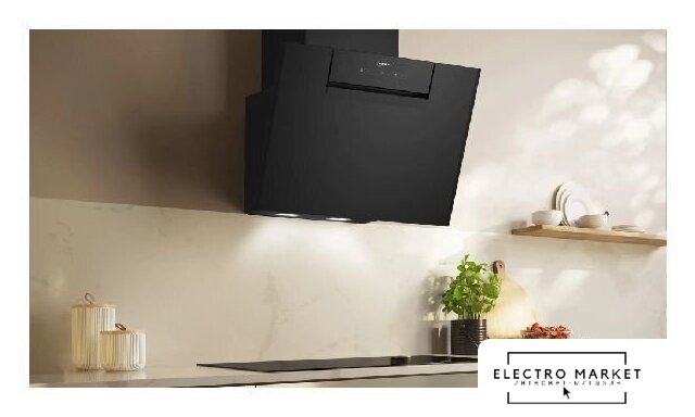 конструкция наклонная, монтаж настенный, ширина 59.5 см, управление сенсорное, производительность вытяжки 420 м³/ч, цвет черный