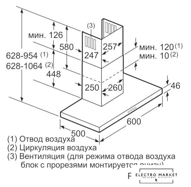 | Производительность отвода в интенсивном режиме | 680 куб. м/ч |