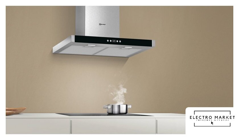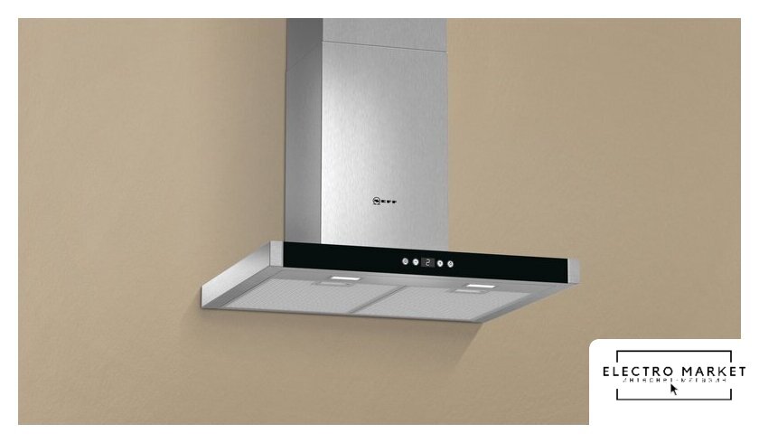конструкция наклонная, монтаж настенный, ширина 90 см, управление электронное/кнопочное, цвет нержавеющая сталь/черный