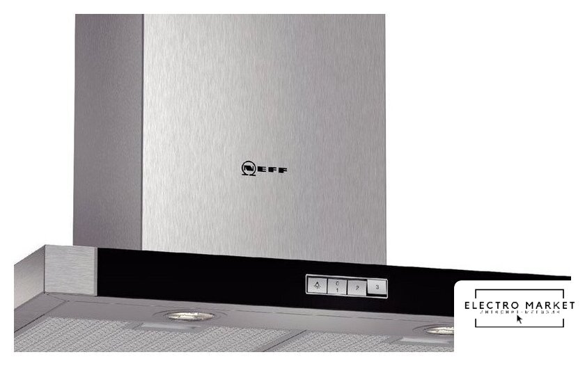 конструкция Т-образная, монтаж настенный, ширина 60 см, управление сенсорное, производительность вытяжки 417 м³/ч, цвет нержавеющая сталь