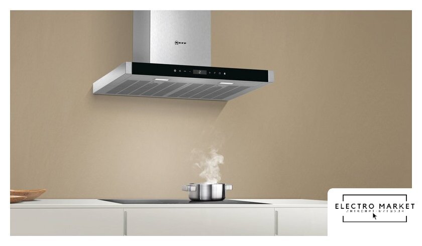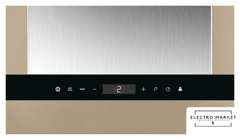 конструкция Т-образная, монтаж настенный, ширина 60 см, управление сенсорное, производительность вытяжки 414 м³/ч, цвет нержавеющая сталь/черный