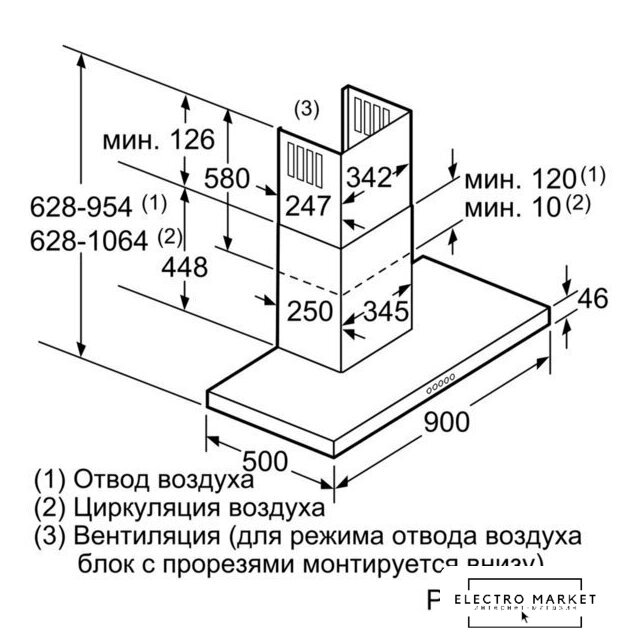 | Минимальная производительность отвода | 310 куб. м/ч |