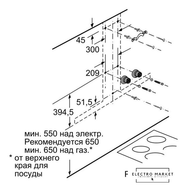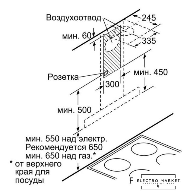 монтаж настенный, ширина 60 см, управление механическое, производительность мотора 320 м³/ч