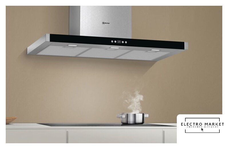 конструкция наклонная, монтаж настенный, ширина 89 см, управление сенсорное, производительность вытяжки 500 м³/ч, цвет нержавеющая сталь/черный