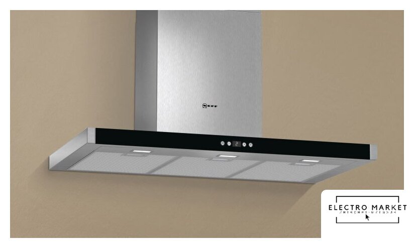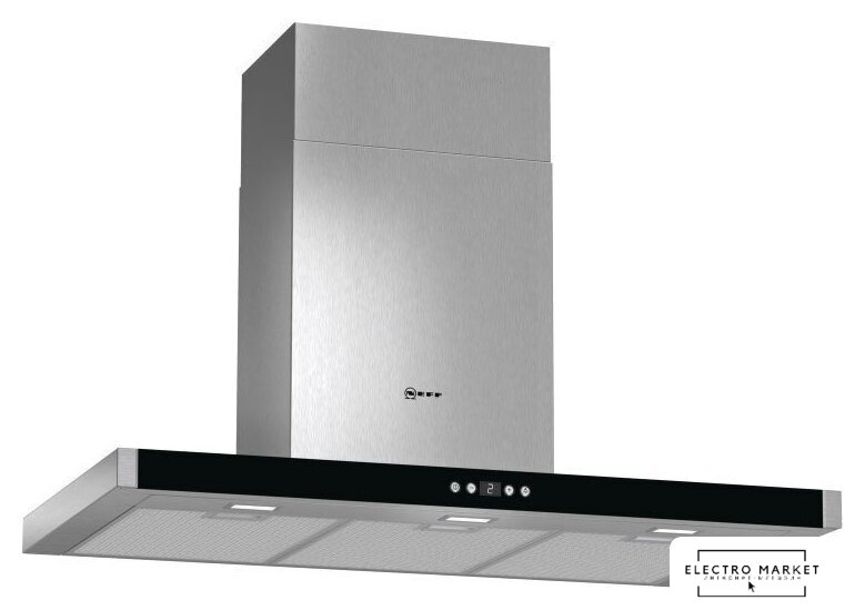 конструкция Т-образная, монтаж островной, ширина 90 см, управление электронное/кнопочное, производительность мотора 1280 м³/ч, цвет нержавеющая сталь