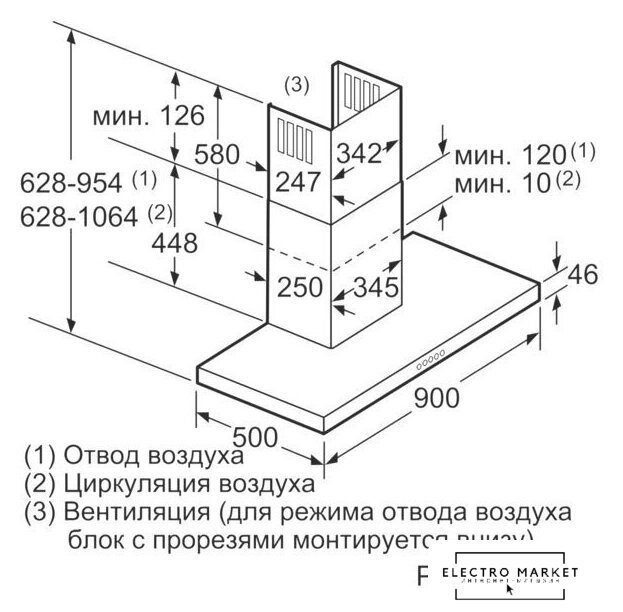 | Минимальная производительность отвода | 300 куб. м/ч |