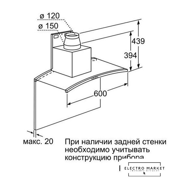 | Диаметр воздуховода | 120 мм (150 мм) |