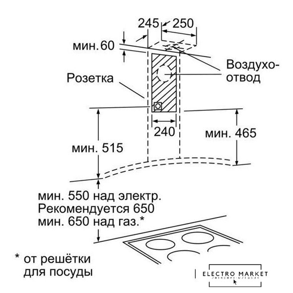 монтаж настенный, ширина 60 см, управление электронное, производительность мотора 640 м³/ч
