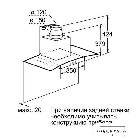 | Диаметр воздуховода | 120 мм (150 мм) |