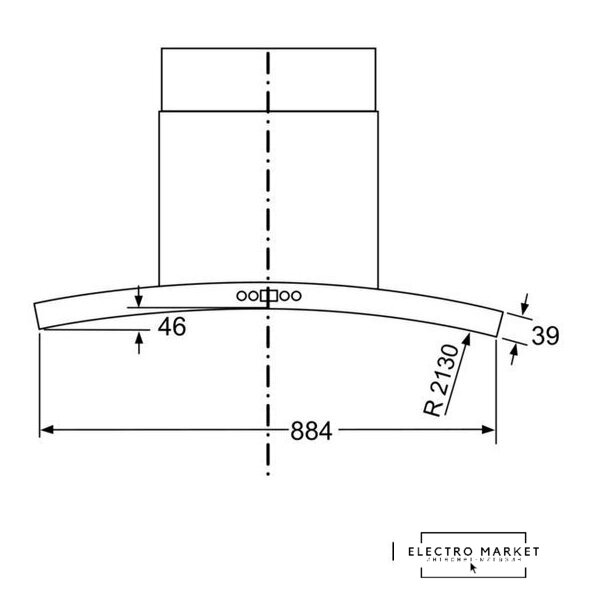 монтаж островной, ширина 90 см, управление электронное, производительность мотора 820 м³/ч