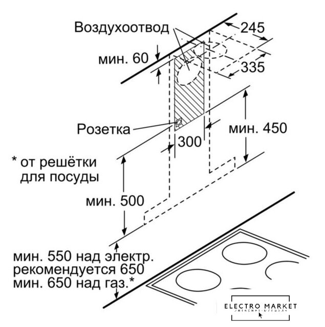 монтаж островной, управление механическое/кнопочное, производительность мотора 600 м³/ч, ширина 120 см
