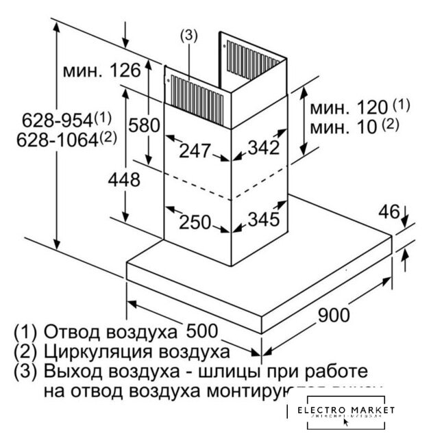 | Производительность отвода в интенсивном режиме | 844 куб. м/ч |