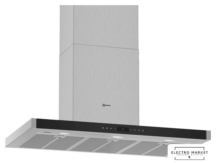конструкция скрытая, монтаж островной/для встраивания, ширина 100 см, управление электронное, производительность мотора 1200 м³/ч, цвет нержавеющая сталь