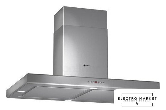 конструкция Т-образная, монтаж настенный, ширина 90 см, управление электронное, производительность мотора 690 м³/ч, цвет нержавеющая сталь