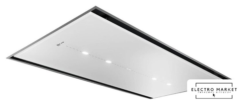 конструкция скрытая, монтаж островной, ширина 100 см, управление электронное, производительность вытяжки 570 м³/ч, производительность мотора 1200 м³/ч, цвет белый