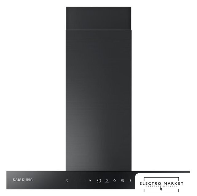 конструкция Т-образная, монтаж настенный, ширина 90 см, управление электронное/кнопочное, производительность вытяжки 451 м³/ч, цвет нержавеющая сталь