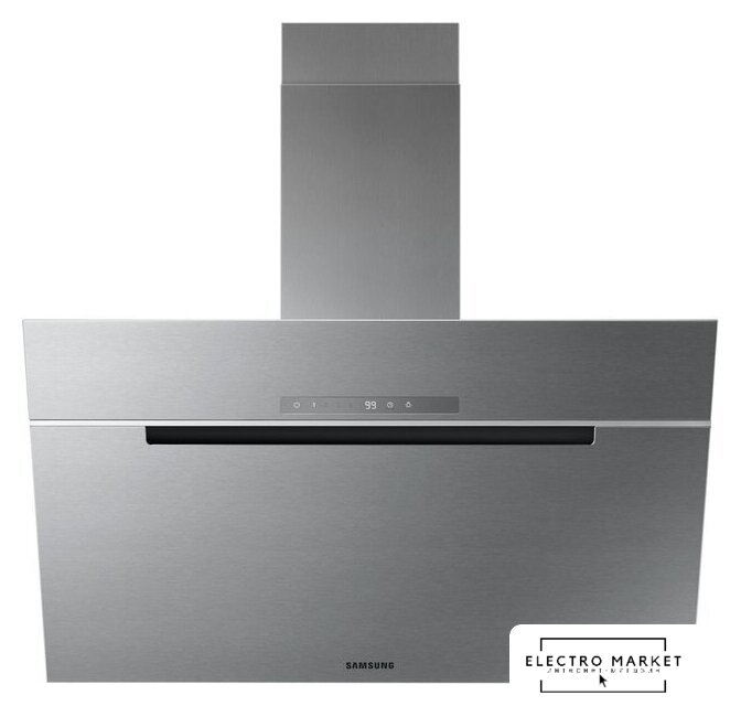 конструкция наклонная, монтаж настенный, ширина 85 см, управление электронное/кнопочное, производительность вытяжки 500 м³/ч, цвет нержавеющая сталь/черный