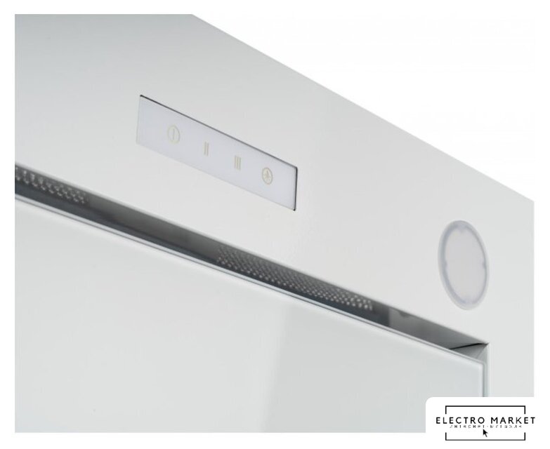 конструкция наклонная, монтаж настенный, ширина 89 см, управление сенсорное, производительность мотора 700 м³/ч, цвет белый