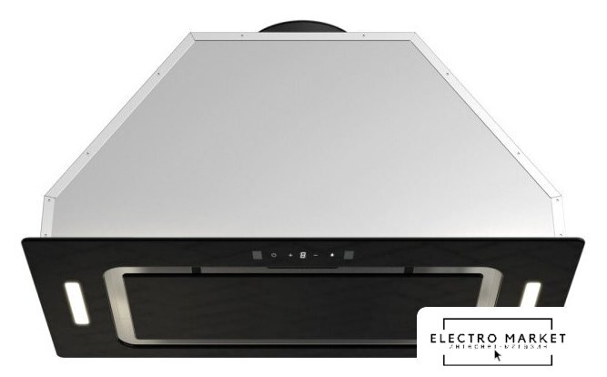 конструкция скрытая, монтаж для встраивания, ширина 70 см, управление электронное, производительность мотора 1200 м³/ч, цвет черный