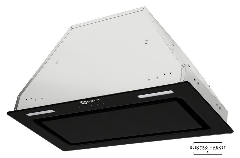 конструкция скрытая, монтаж для встраивания, ширина 52 см, управление сенсорное, производительность вытяжки 350 м³/ч, производительность мотора 850 м³/ч, цвет черный