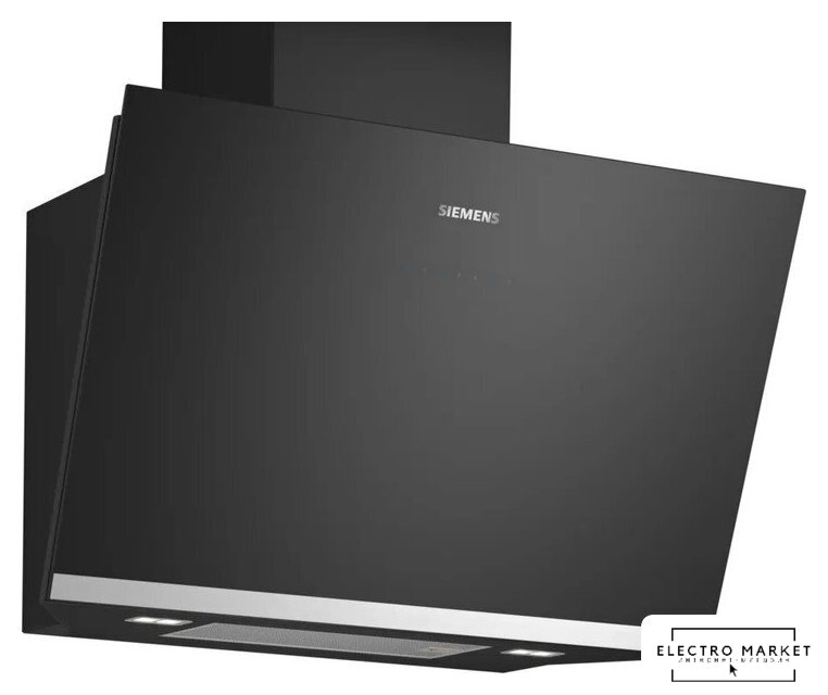 конструкция наклонная, монтаж настенный, ширина 89 см, управление сенсорное, производительность вытяжки 441 м³/ч, цвет черный