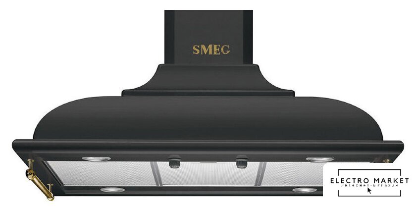 конструкция Т-образная, монтаж настенный, управление электронное/кнопочное, производительность вытяжки 490 м³/ч, производительность мотора 1280 м³/ч, ширина 120 см