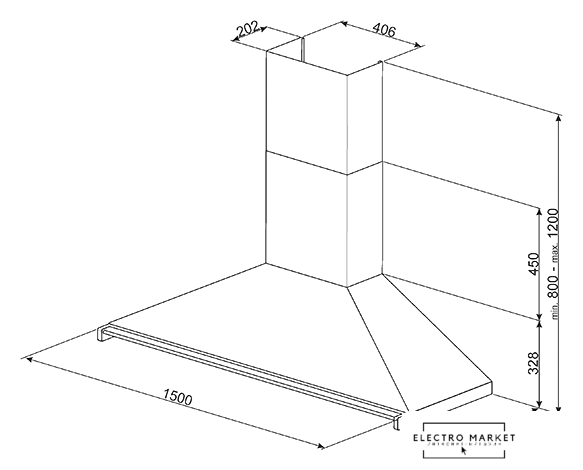 монтаж настенный, управление электронное/сенсорное, производительность мотора 1000 м³/ч, ширина 120 см