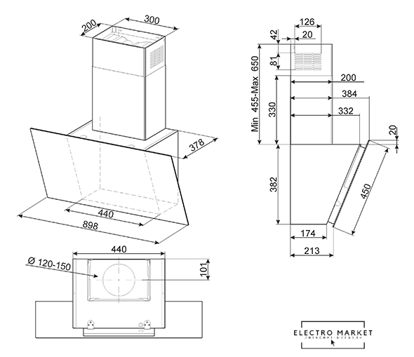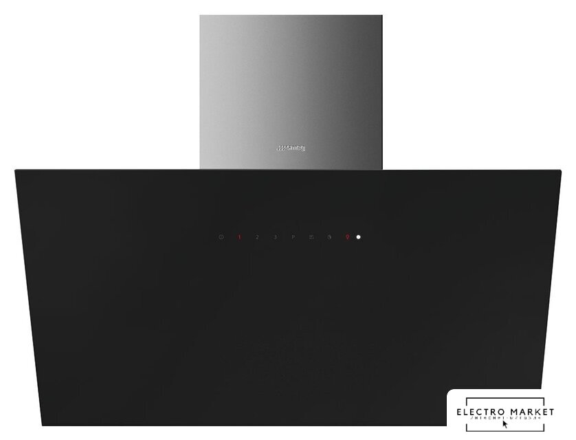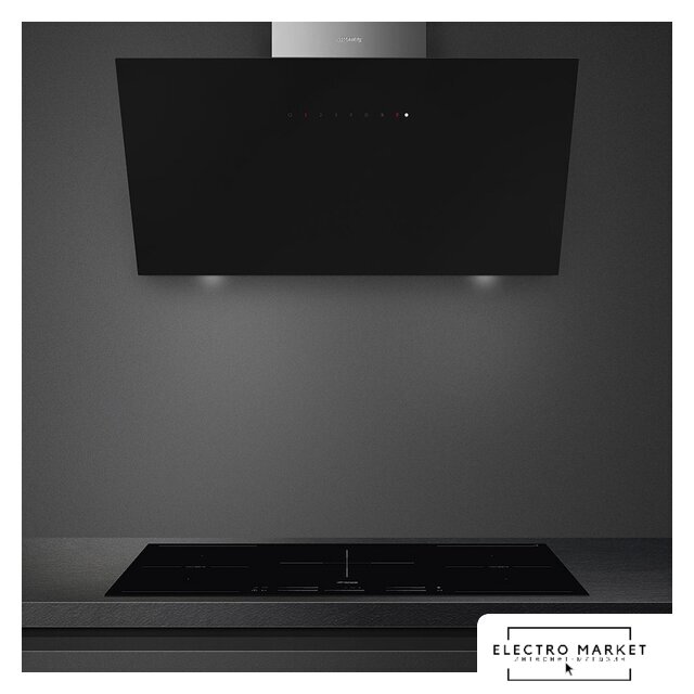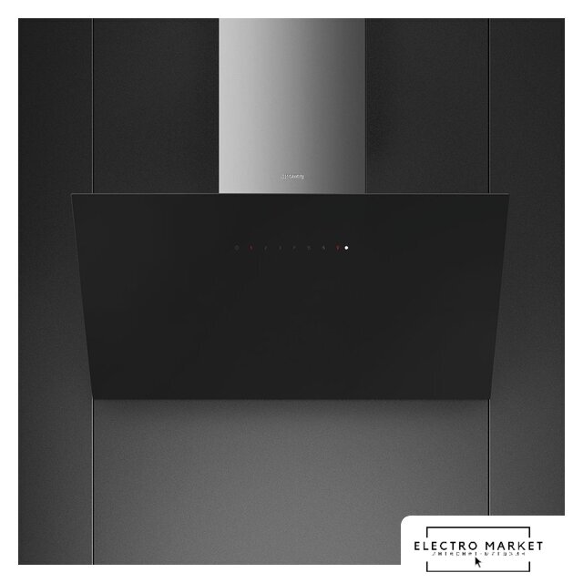 конструкция наклонная, монтаж настенный, ширина 89.8 см, управление сенсорное, производительность вытяжки 450 м³/ч, производительность мотора 1200 м³/ч, цвет черный