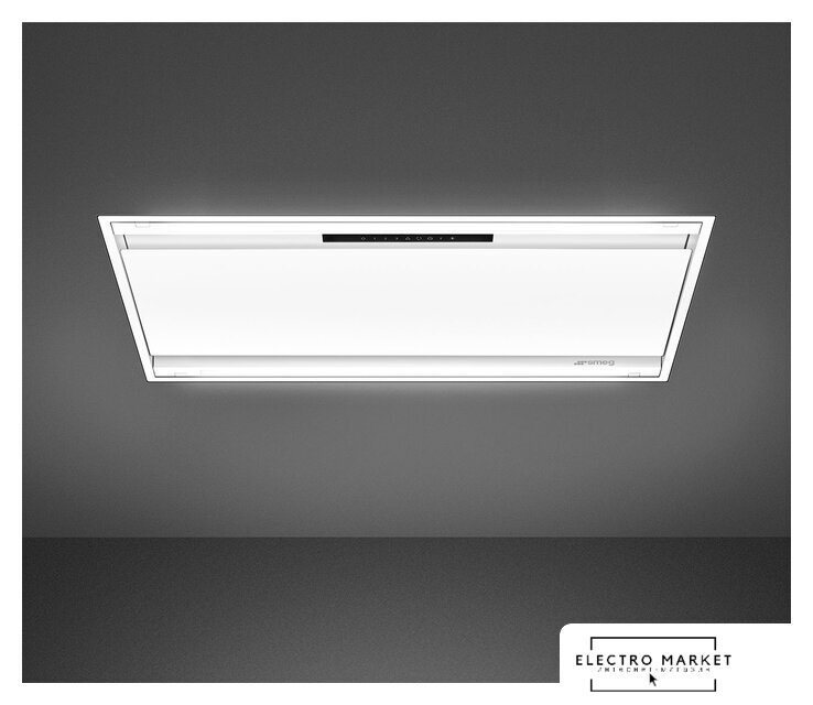 конструкция купольная, монтаж настенный, ширина 85 см, управление сенсорное, производительность мотора 580 м³/ч, цвет серый