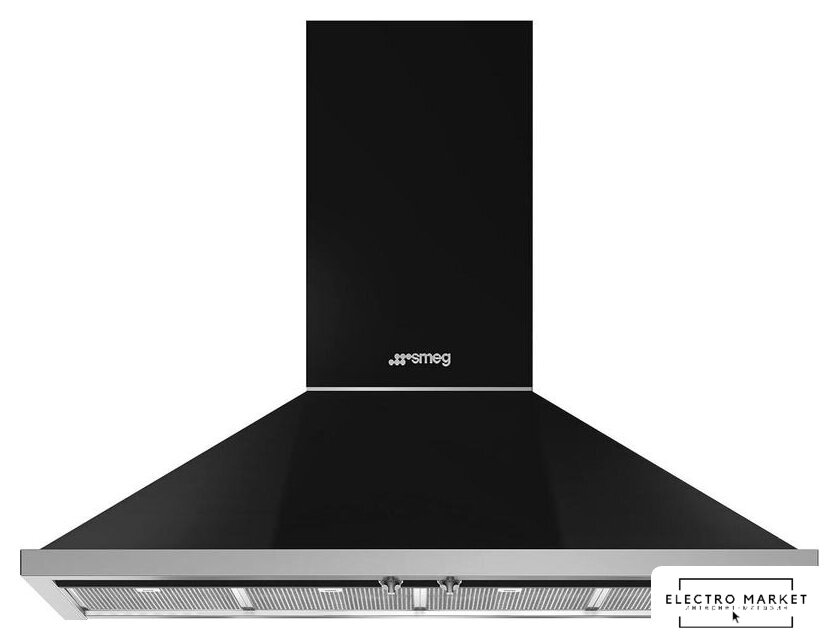 конструкция купольная, монтаж настенный, управление поворотный переключатель, производительность мотора 820 м³/ч, ширина 90 см