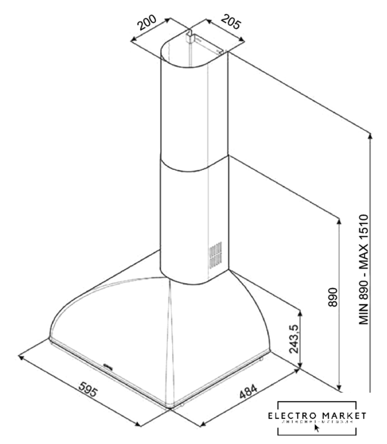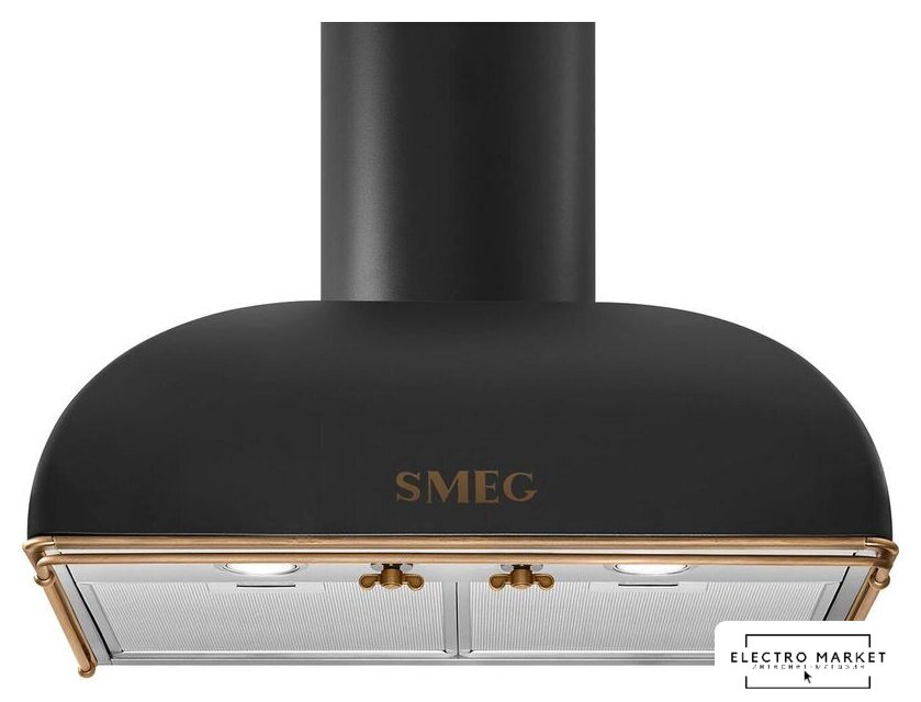 конструкция купольная, монтаж настенный, управление механическое/поворотный переключатель, производительность вытяжки 630 м³/ч, ширина 89.6 см