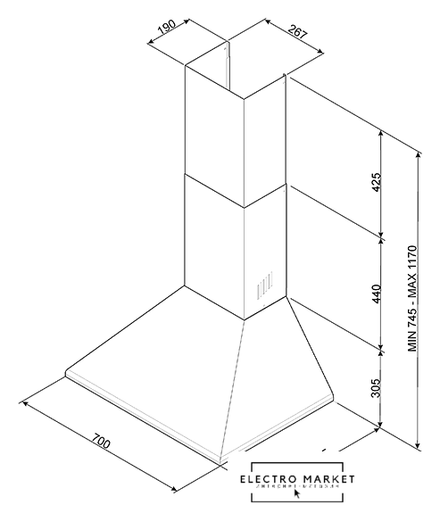 конструкция скрытая, монтаж для встраивания, ширина 54 см, управление механическое/кнопочное, производительность вытяжки 580 м³/ч, цвет нержавеющая сталь