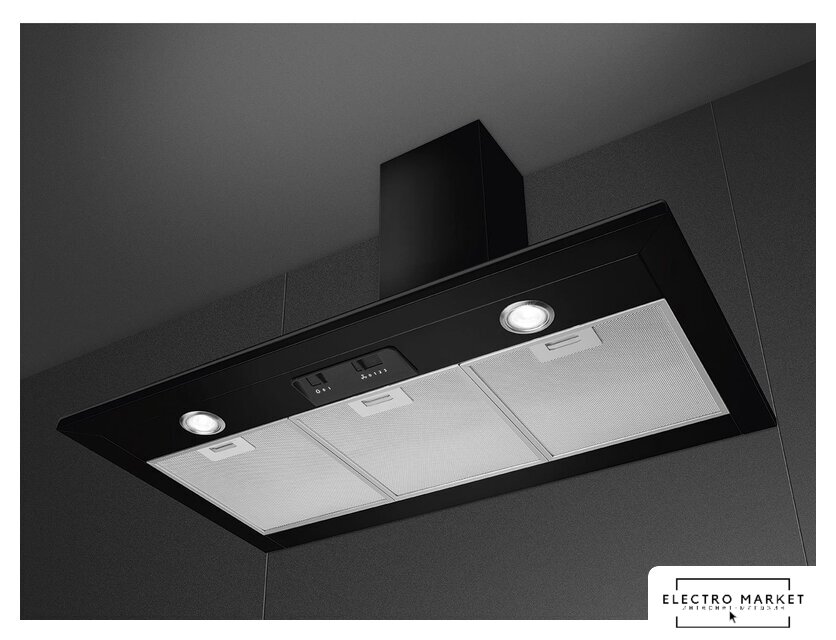 конструкция скрытая, монтаж для встраивания, ширина 52.6 см, управление электронное/кнопочное, производительность вытяжки 548 м³/ч, производительность мотора 800 м³/ч, цвет черный