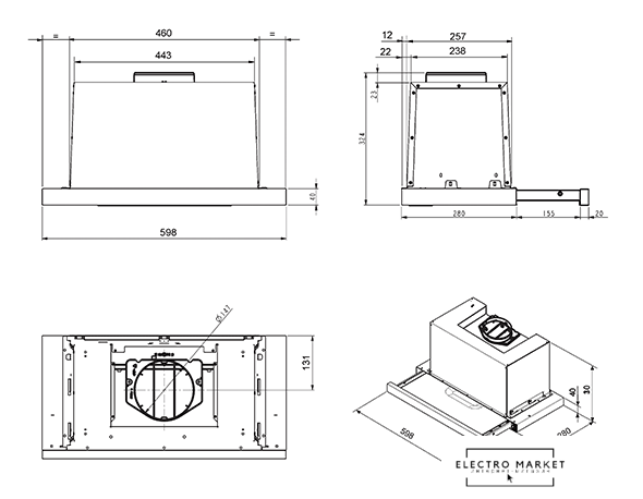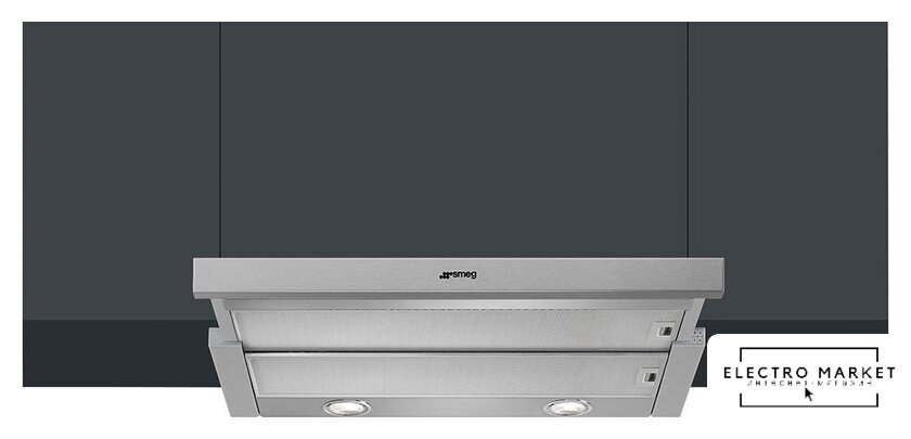 конструкция скрытая, монтаж для встраивания, ширина 54 см, управление механическое/кнопочное, производительность вытяжки 580 м³/ч, цвет нержавеющая сталь