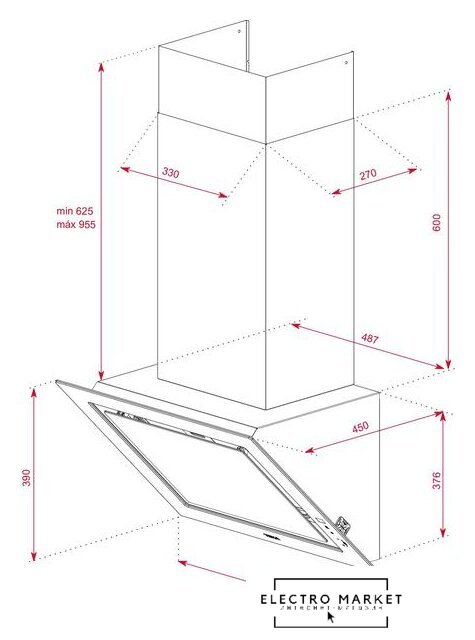конструкция наклонная, монтаж настенный, ширина 600 см, управление сенсорное/дистанционное, производительность мотора 1250 м³/ч, цвет черный
