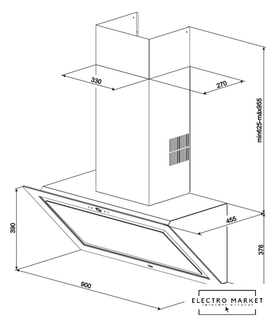 конструкция наклонная, монтаж настенный, ширина 89.6 см, управление сенсорное, производительность вытяжки 575 м³/ч, цвет черный