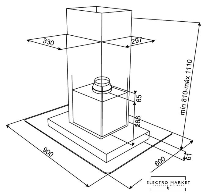 конструкция купольная, монтаж настенный, управление слайдерное, производительность мотора 650 м³/ч, ширина 59.8 см