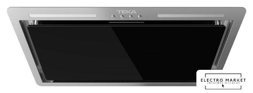 конструкция Т-образная, монтаж настенный, ширина 90 см, управление сенсорное, производительность вытяжки 531 м³/ч, цвет черный