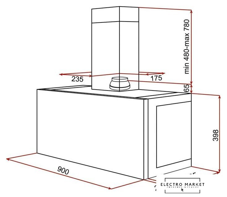 конструкция скрытая, монтаж настенный/для встраивания, ширина 54 см, управление электронное/кнопочное, производительность вытяжки 580 м³/ч, цвет черный