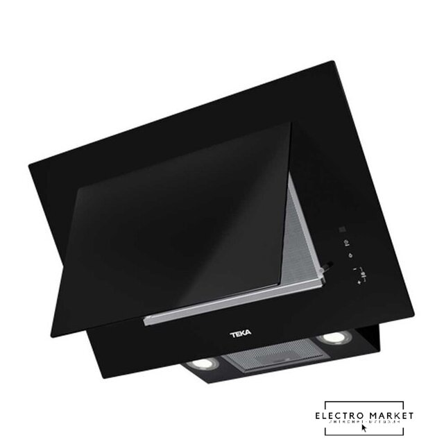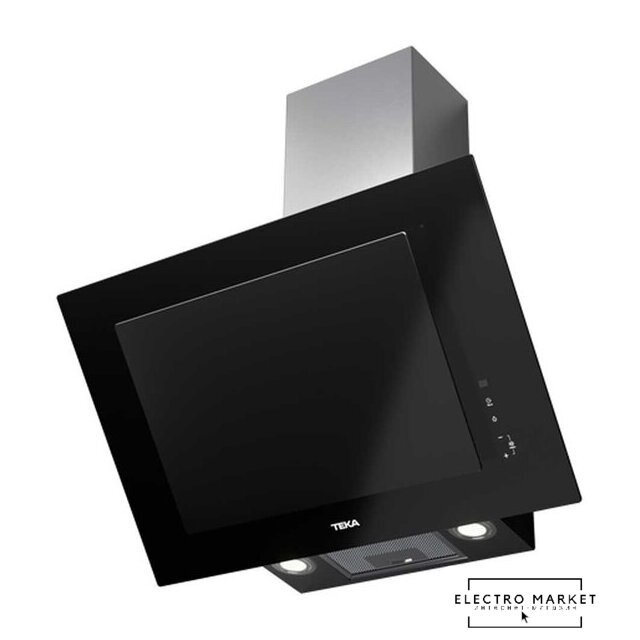 конструкция Т-образная, монтаж настенный, ширина 60 см, управление электронное/кнопочное, производительность вытяжки 580 м³/ч, цвет черный