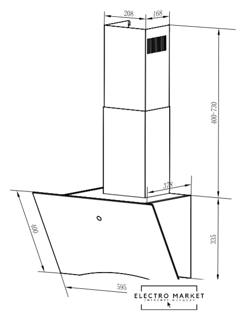 конструкция Т-образная, монтаж настенный, ширина 59.7 см, управление механическое/кнопочное, производительность мотора 790 м³/ч, цвет черный