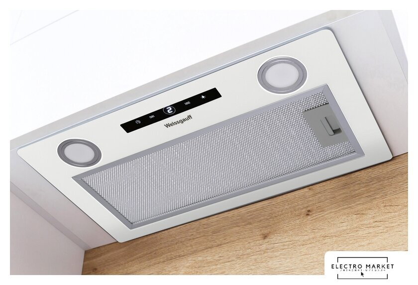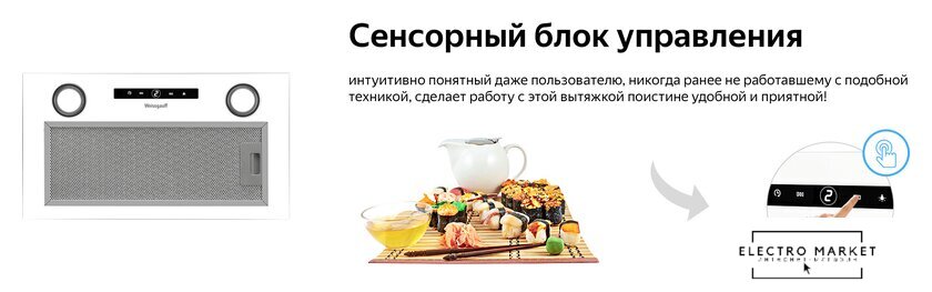 конструкция наклонная, монтаж настенный, ширина 60 см, управление сенсорное, производительность мотора 1050 м³/ч, цвет белый