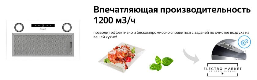 конструкция скрытая, монтаж для встраивания, ширина 59.8 см, управление механическое/кнопочное, производительность мотора 1050 м³/ч, цвет черный