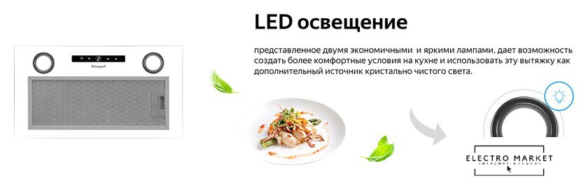 конструкция наклонная, монтаж настенный, ширина 60 см, управление сенсорное, производительность вытяжки 302 м³/ч, производительность мотора 650 м³/ч, цвет белый